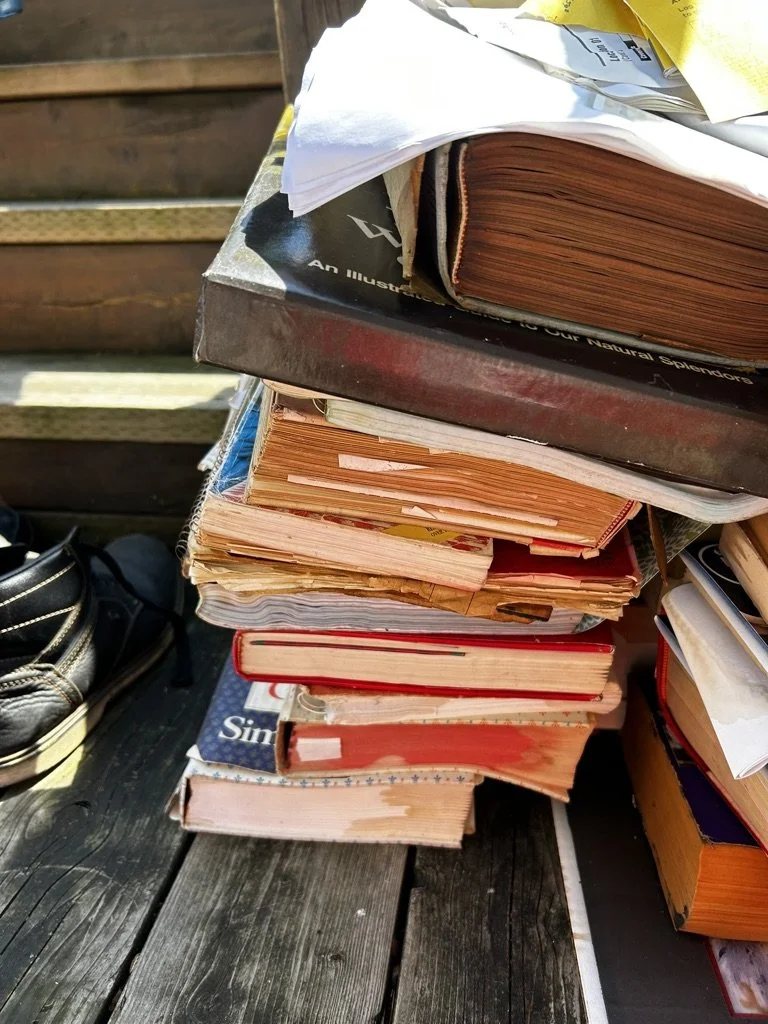 While I listened, I imagined sitting in my ruined basement, pieces of missing walls, absent floors, absent furniture. Places where Grant’s roll top desk sat. Bins of my children’s childhood memories. The books missing from discarded bookcases, the space where my mother’s recipe books sat unopened, waiting for the day I would use them. The crossword dictionary I gave her for her birthday, an attempt to stimulate her fading control over her mind. What stories could I find within me if I sat there. i thought about it. Stories that may make me cry. Am I ok with crying? I haven’t cried about it at all.